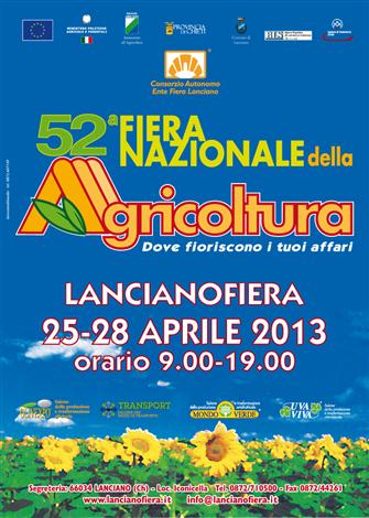 E' iniziata ieri la 52esima edizione della Fiera Nazionale dell'Agricoltura, a Lanciano (Ch). La rassegna, che andrà avanti fino al 28 aprile, ospita sui 60mila metri quadrati della Fiera di Lanciano più di 250 espositori provenienti da varie regioni, tra cui il Molise. A tale proposito, segnaliamo anche la presenza di un'azienda di Termoli: la AgriPegaso.